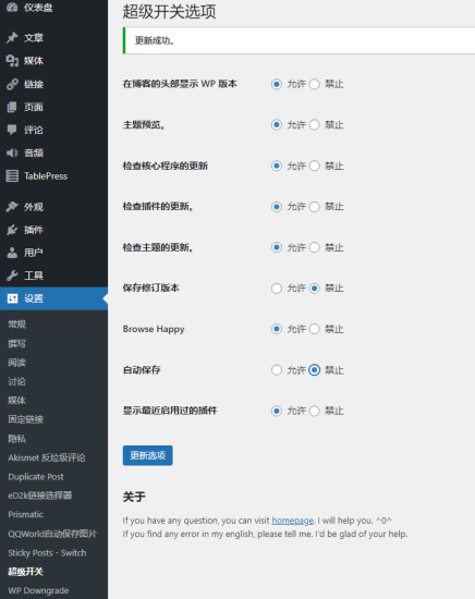 运行环境由PHP74切换到PHP83, 超级开关 Super Switch插件不兼容, 改用WPOPT来实现以下2项,但前提是在删除Super Switch时,要把"保存修订版本"和"自动保存"2项恢复成充许后再删除,
