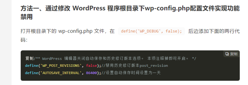 温馨提示PS:不少WordPress用户会使用在wp-config.php添加相关代码来禁用自动保存和修订版本,但就个人的使用情况来看效果并不理想,具体原因尚不明确。