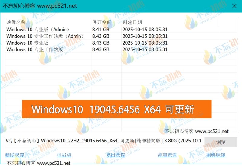文件名: V:\【不忘初心】Windows10_22H2_19045.6456_X64_可更新[纯净精简版][3.80G](2025.10.15).iso
