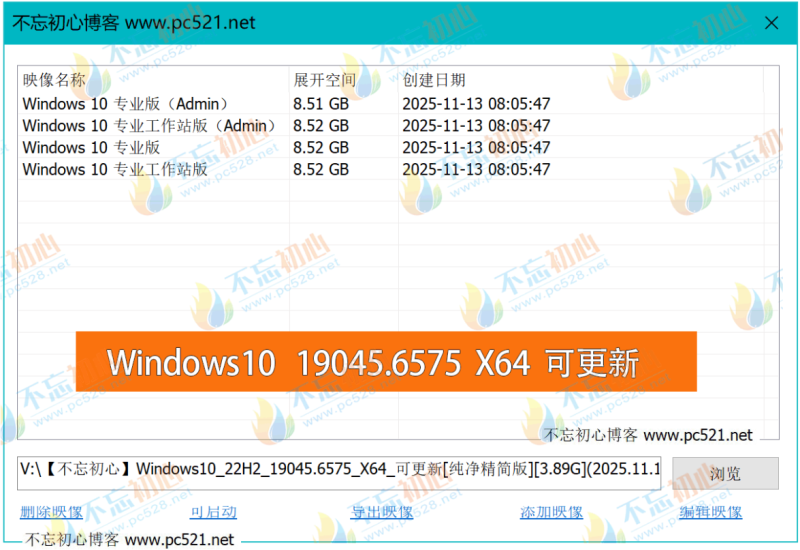 文件名: V:\【不忘初心】Windows10_22H2_19045.6575_X64_可更新[纯净精简版][3.89G](2025.11.13).iso