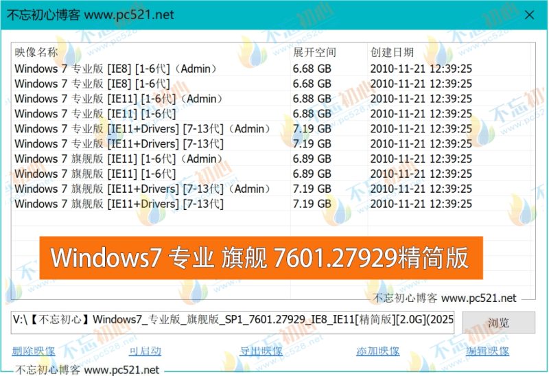 文件名: V:\【不忘初心】Windows7_专业版_旗舰版_SP1_7601.27929_IE8_IE11[精简版][2.0G](2025.9.25).iso