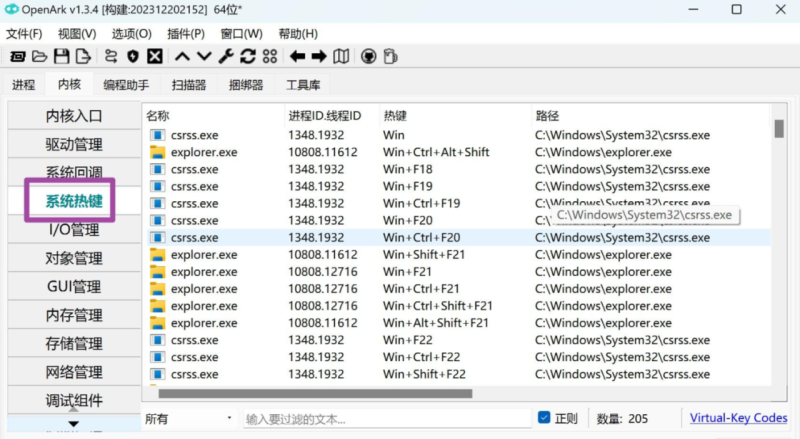 Win热键/快捷键冲突排查神器OpenArk64,内置100种工具,电脑必备工具箱!