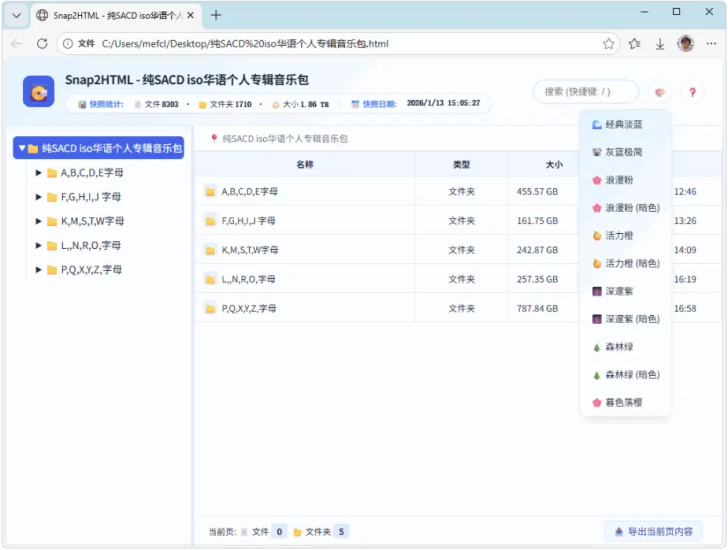 文件夹快照、目录树工具 | Snap2HTML 汉化版 (v2.52 / 2026.01.14)
