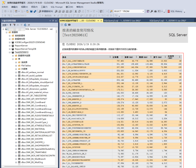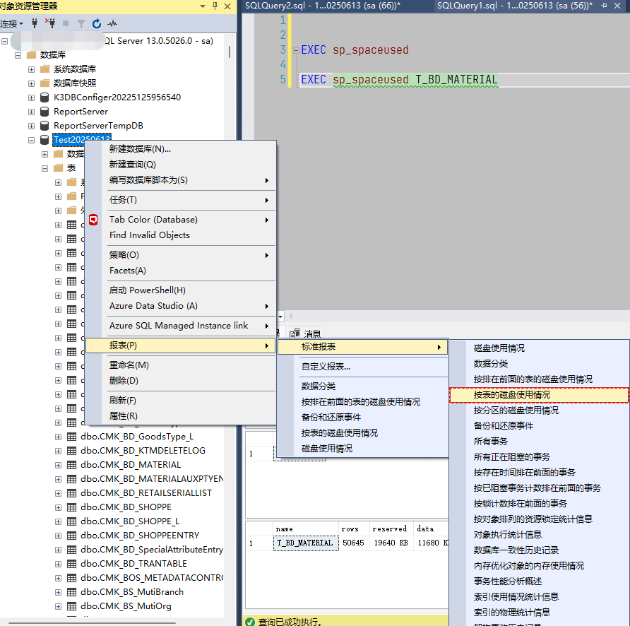 EXEC sp_spaceused EXEC sp_spaceused T_BD_MATERIAL