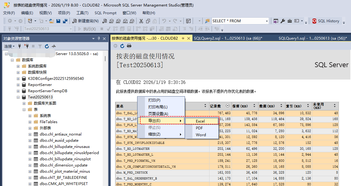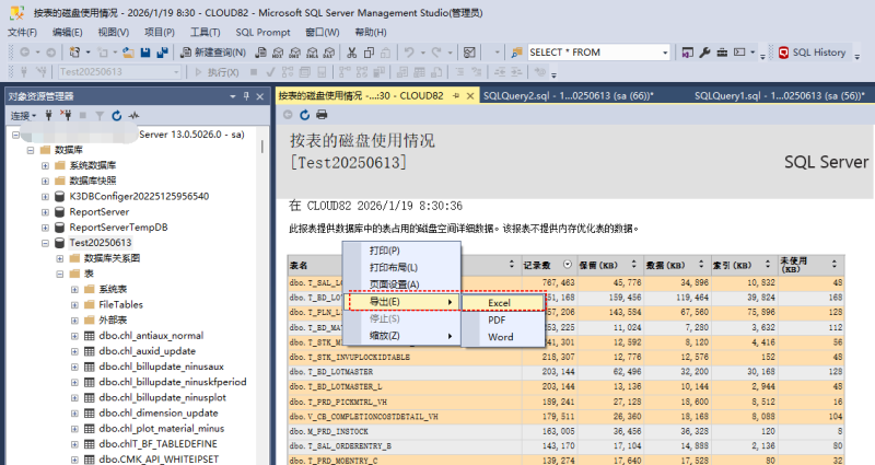 2> 使用SQL Server Management Studio 报表-标准报表-按表的磁盘使用情况