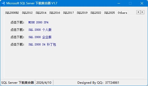 软件由似水无痕大佬出品,用来下载 Microsoft SQL Server 各个版本,包含 2000-2025 众多版本,当然还有大佬自己制作的部分集成版,非常全面。